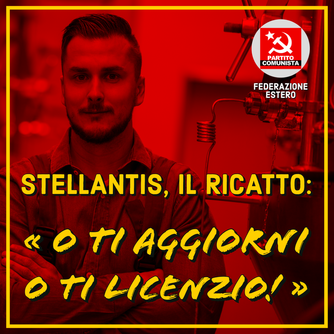 30/05/2022 By Roberto Nava Non attivi Stellantis-ricatto-serbia-pic Ascolta l'articolo ▶ ⏸ ▶▶ ■ Volume Velocità Voce Condividi questo articoloMostra QR CodeURL: https://partitocomunistaestero.org/o-ti-aggiorni-o-ti-licenzio/stellantis-ricatto-serbia-pic/Copia URLShare and Enjoy !Shares Navigazione articoli Articolo precedentePrecedente O ti aggiorni o ti licenzio!